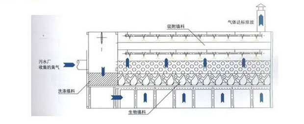 挥发性有机特等污染物吸附在孔隙表面,被孔隙中的微生物所耗用,利用微生物的新陈代谢生命活动将废气中的有害物质转变为简单的无机物及细胞质并降解成CO2、H2O和中性盐。我公司设计研发的生物除臭装置,净化效率高,滤床采用精细填料,以确保生物菌群的高效繁殖。目前被广泛用于垃圾厂、污水处理厂、饲料厂、食品厂、制药行业等废气恶臭净化处理。