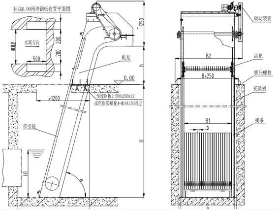 了齿耙在清捞过程中的运动方向(与其它格栅相反),避免把硬物带入底部将齿耙及牵引链卡死;