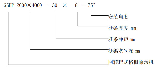GSHP 型回转耙式格栅除污机主要由驱动装置、机架、主轴、栅条、托渣板、齿耙及牵引链组成。在电机驱动下,通过减速机减速后,带动链轮与链条运动,固定在回转链条上除污齿耙链条在栅后运动到底部,经过导轮后翻转到栅前迎水面的位置,继续运动插入固定栅条的间隙中上行,把栅前拦截的污物提升带出水面, 并随着链条的运动到出渣口处自动翻转,污物自卸到格栅后的输送机或渣桶中, 完成除污过程,液体则通过栅条的栅隙流过,整个工作状态连续循环进行。