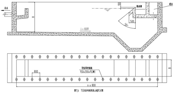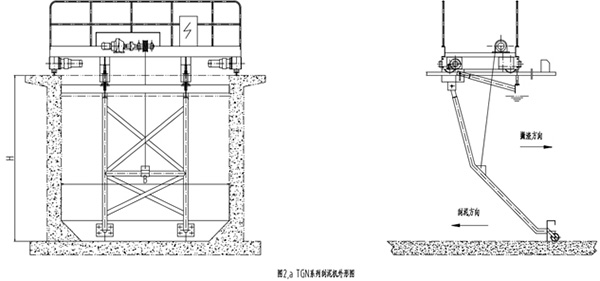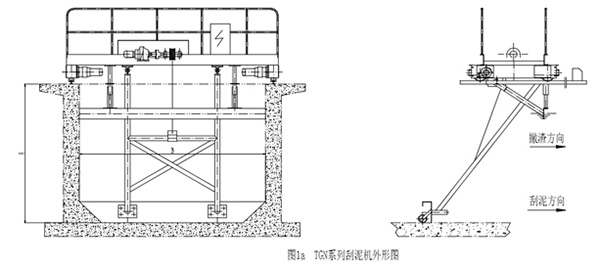 TGN 系列刮泥机如图 1a、2a 所示,由行车、刮泥耙、撇渣耙、驱动装置和控制柜等组成。