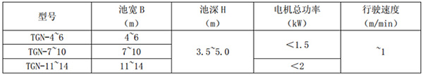 TGN 系列抬耙刮泥机用于污水处理厂平流沉淀池,将沉降在池底的污泥刮集至集泥槽,并将池面的浮渣撇向集渣槽。